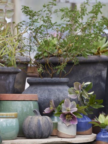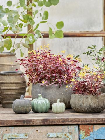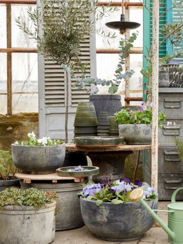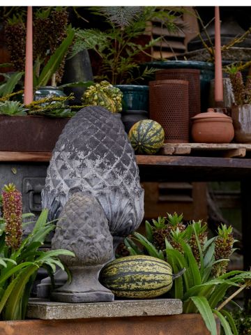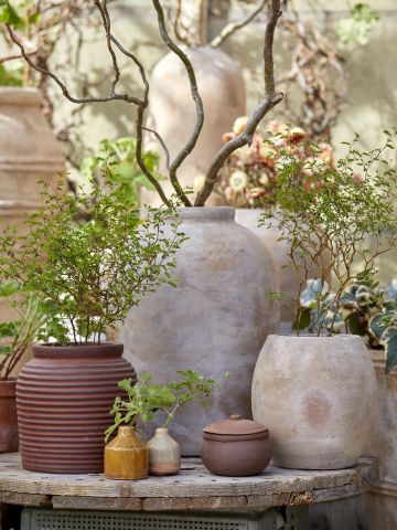 Gå på opdagelse i vores kollektion af diverse dekorationselementer som pottehængere og -stativer, glas, ornamenter, dekorative figurer samt vandkander og enkelte møbler.