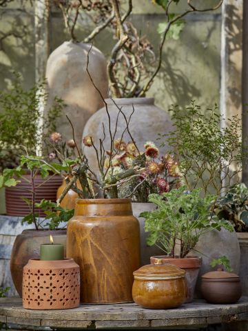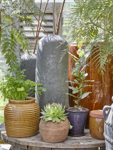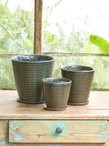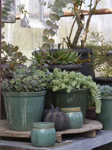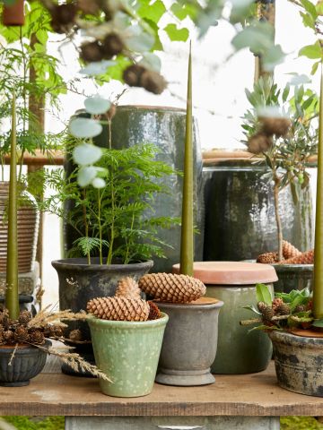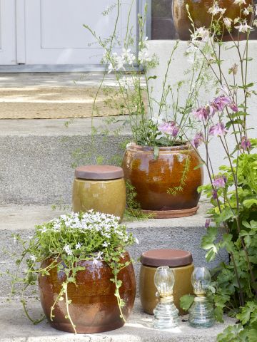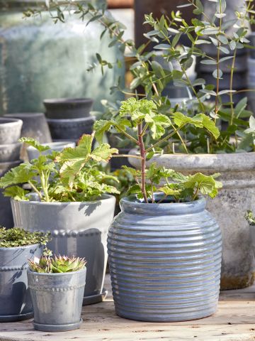 Sæt kulør på din indretning eller dit udemiljø med unikke, håndglaserede potter. Du finder variationer i glasuren, da glasering er et håndværk, der giver unikke resultater. Glaserede potter absorberer ikke fugten fra dine planter. Det er en fordel for de planter, som ikke har brug for et konstant fugtigt miljø.
