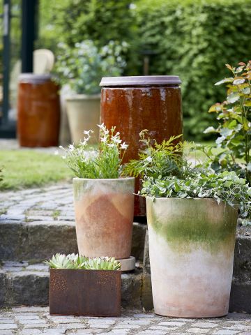 Sæt kulør på din indretning eller dit udemiljø med unikke, håndglaserede potter. Du finder variationer i glasuren, da glasering er et håndværk, der giver unikke resultater. Glaserede potter absorberer ikke fugten fra dine planter. Det er en fordel for de planter, som ikke har brug for et konstant fugtigt miljø.