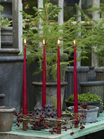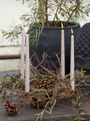 Gå på opdagelse i alle sæsonens smukke farver lige fra klassisk hvid og offwhite til dyb rød, mørk oliven og mange andre lækre nuancer. Vores lys er produceret i Danmark. De er lavet af 100% fødevareforberedt paraffin og er manuelt farvet i en speciel voks, som har et andet smeltepunkt end kernen. Derfor brænder de både flot og 100% sodfrit. Find også rustikke og dekorative stager, der passer til dine lys.
