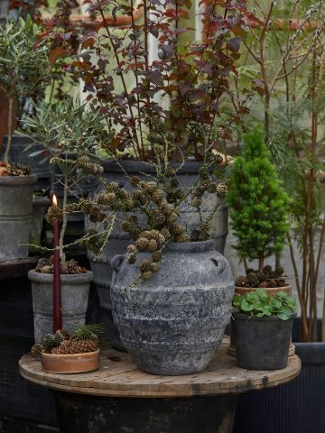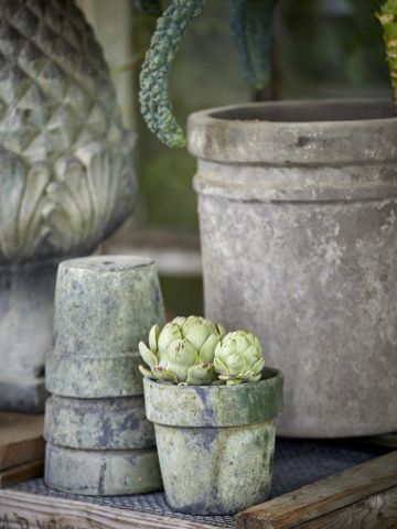 Giv dine planter naturlig pleje i en patineret potte - med god samvitiighed. Vores patinerede lerpotter har fået deres patina helt naturligt - skånsomt for både miljøet og dine planters trivsel. Den naturlige patinering gør hver enkelt potte unik, og du finder ikke to potter, der er helt ens.